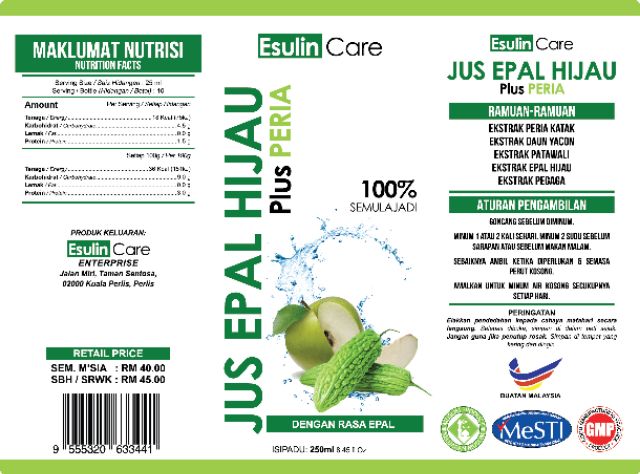 Jus Minuman Jus Epal Hijau Plus Peria Esulincare 250ml Loose Pack Shopee Malaysia